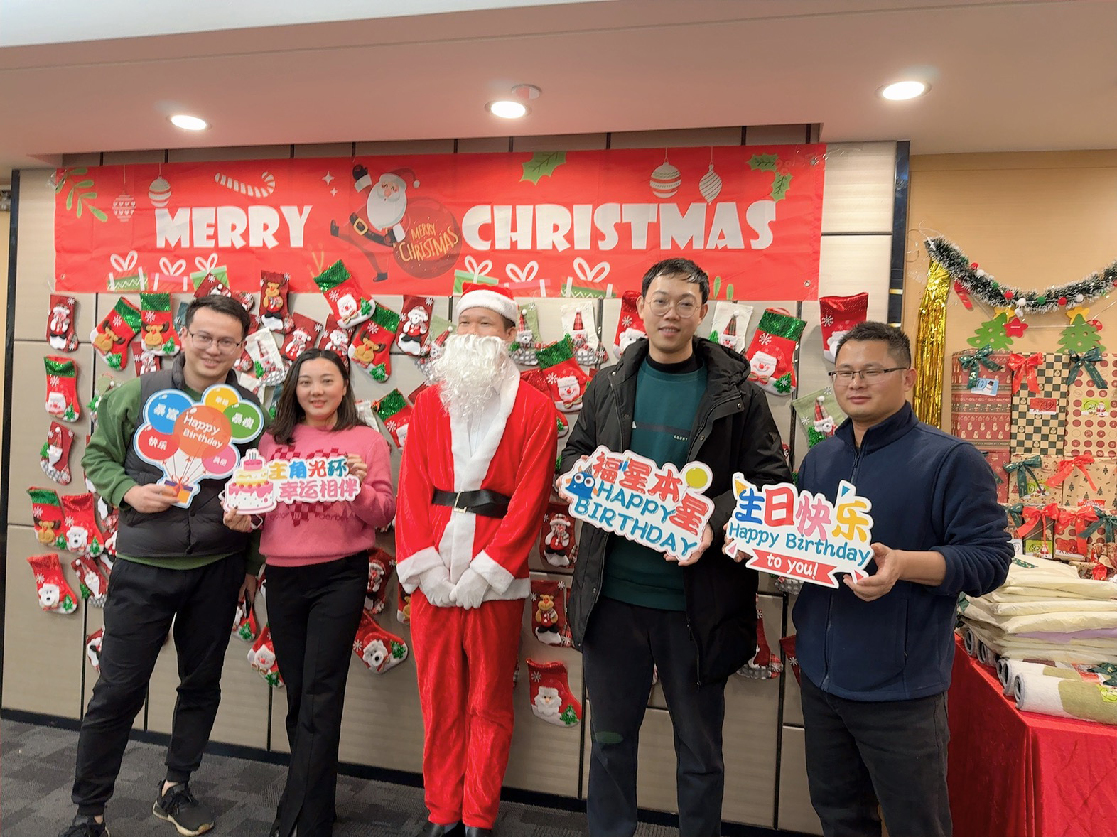 ? ? ? ?隨后,公司舉辦了一場別出心裁的知識問答活動。每位同事抽取問題并回答,答對者即可在圣誕墻上選取圣誕襪。每個襪子里有相對應的禮品,這一環節不僅考驗了員工對公司文化的了解程度,更讓員工在輕松愉快的氛圍中獲得了驚喜和收獲。
