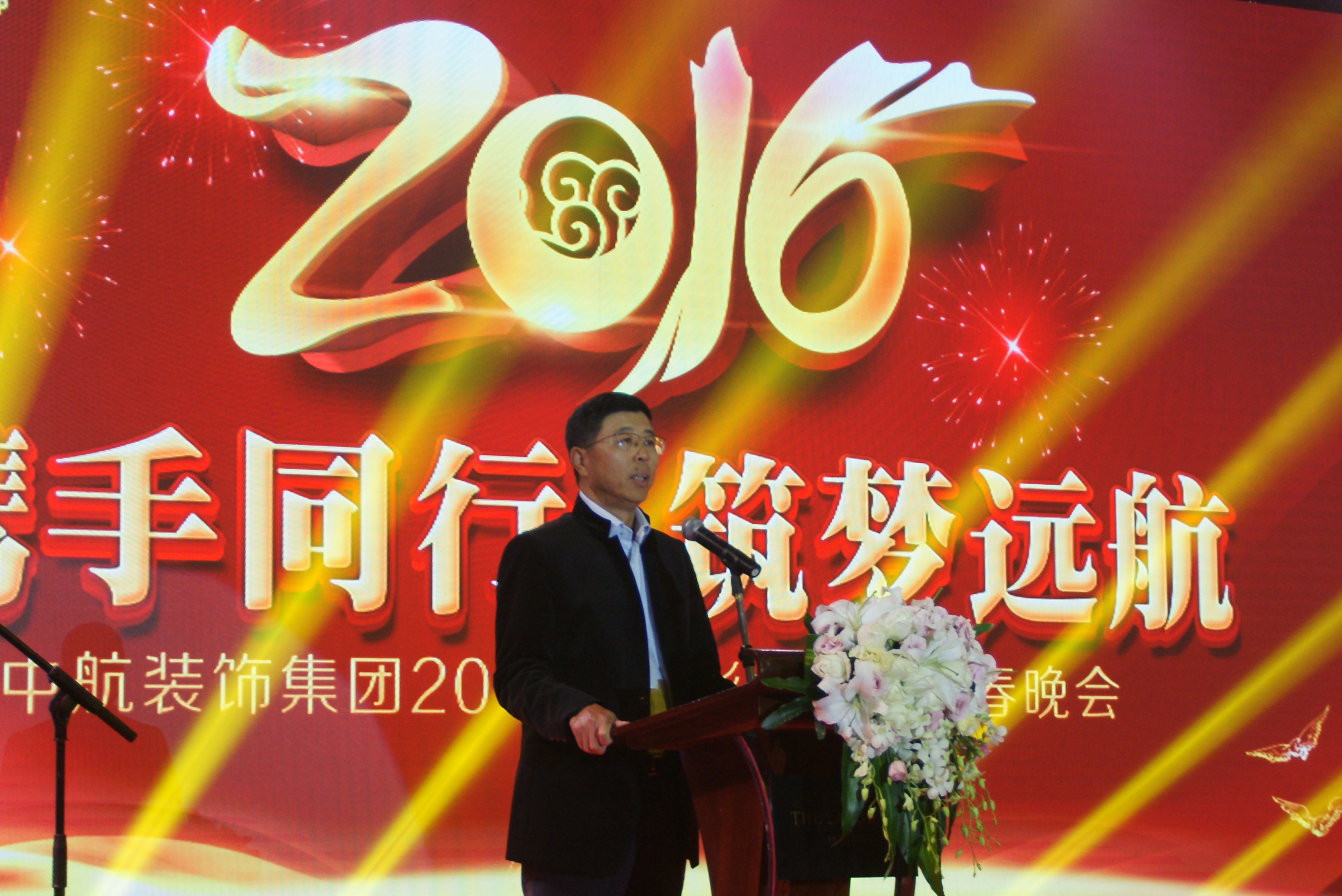 大會共分四個篇章,即:2015年度總結回顧、2015年度優秀表彰、精彩文藝匯演、晚宴及抽獎。中航裝飾集團董事長石英在會上做了題為《應對挑戰? 完善管理? 走持續發展之路》的2015年度工作總結報告。石英董事長在報告中肯定了過去一年集團取得的輝煌成績,同時也對集團未來一年的美好前景進行了戰略規劃,他感謝一路陪伴集團成長并給予支持的同仁,相信2016年在大家的努力下一定會取得更優異的成績。